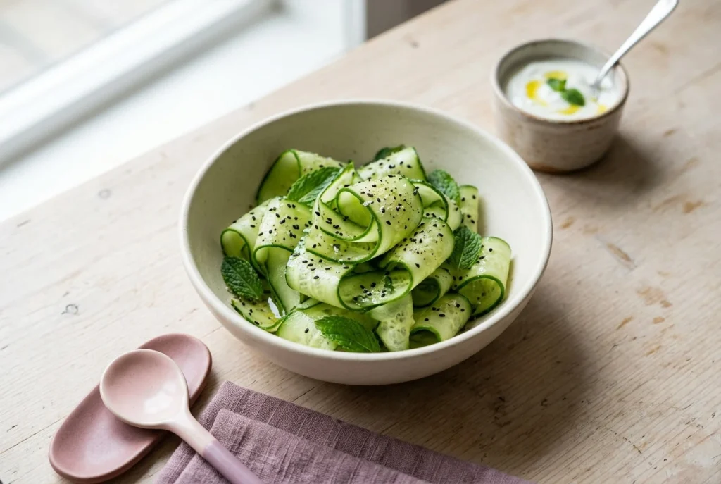 Salt the cucumber lightly, wait 5 minutes, then toss with oil, lemon, herbs, pepper. Eat it with whatever dinner you are already making.