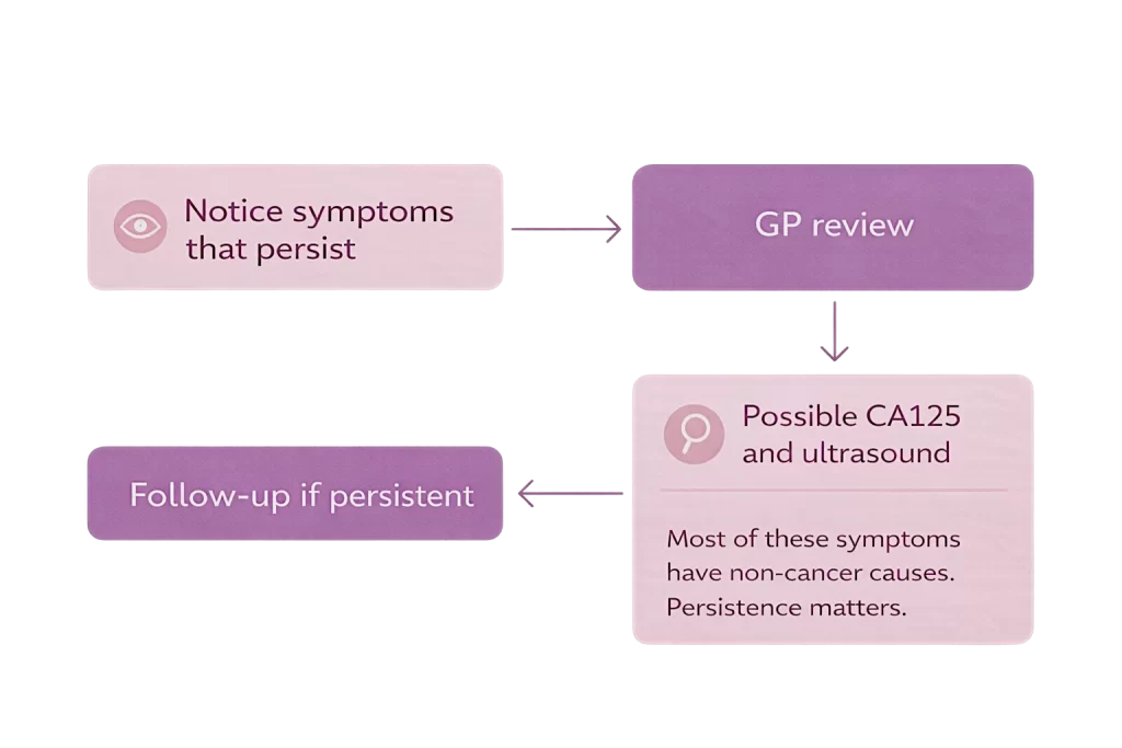 These statistics are not here to alarm. They help explain why ovarian cancer awareness matters, and why persistent symptoms deserve timely review.