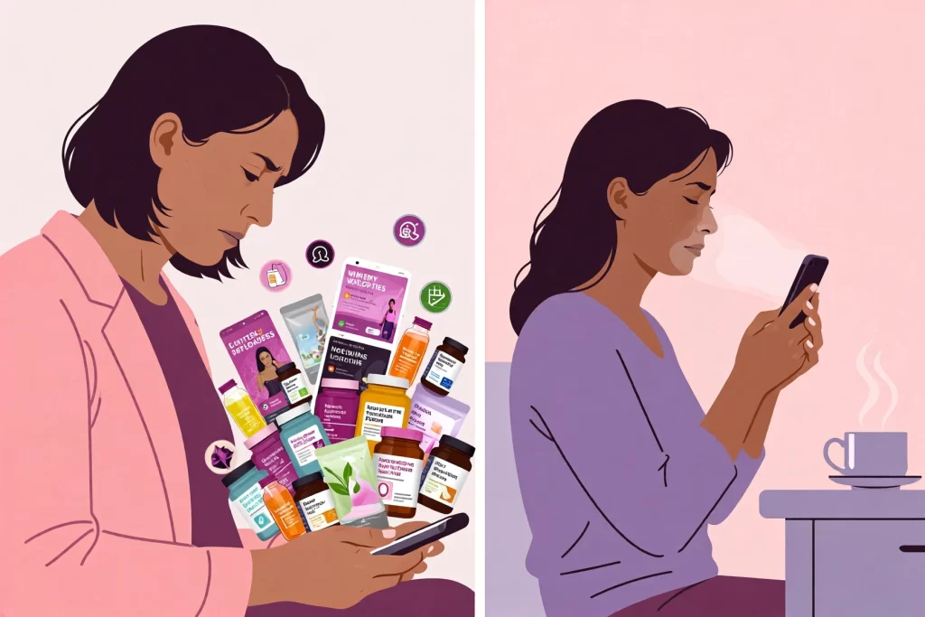 If a brand tells you that you are broken without their product, step back. Independent reports have called some corners of menopause marketing a “shameful war zone” of unsubstantiated claims. - Is a single supplement or gadget being sold as the complete answer