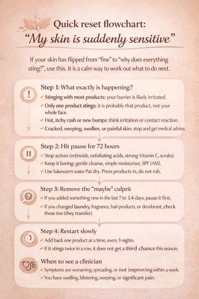 - Redness and reactivity can flare: temperature swings often make skin feel more easily unsettled.